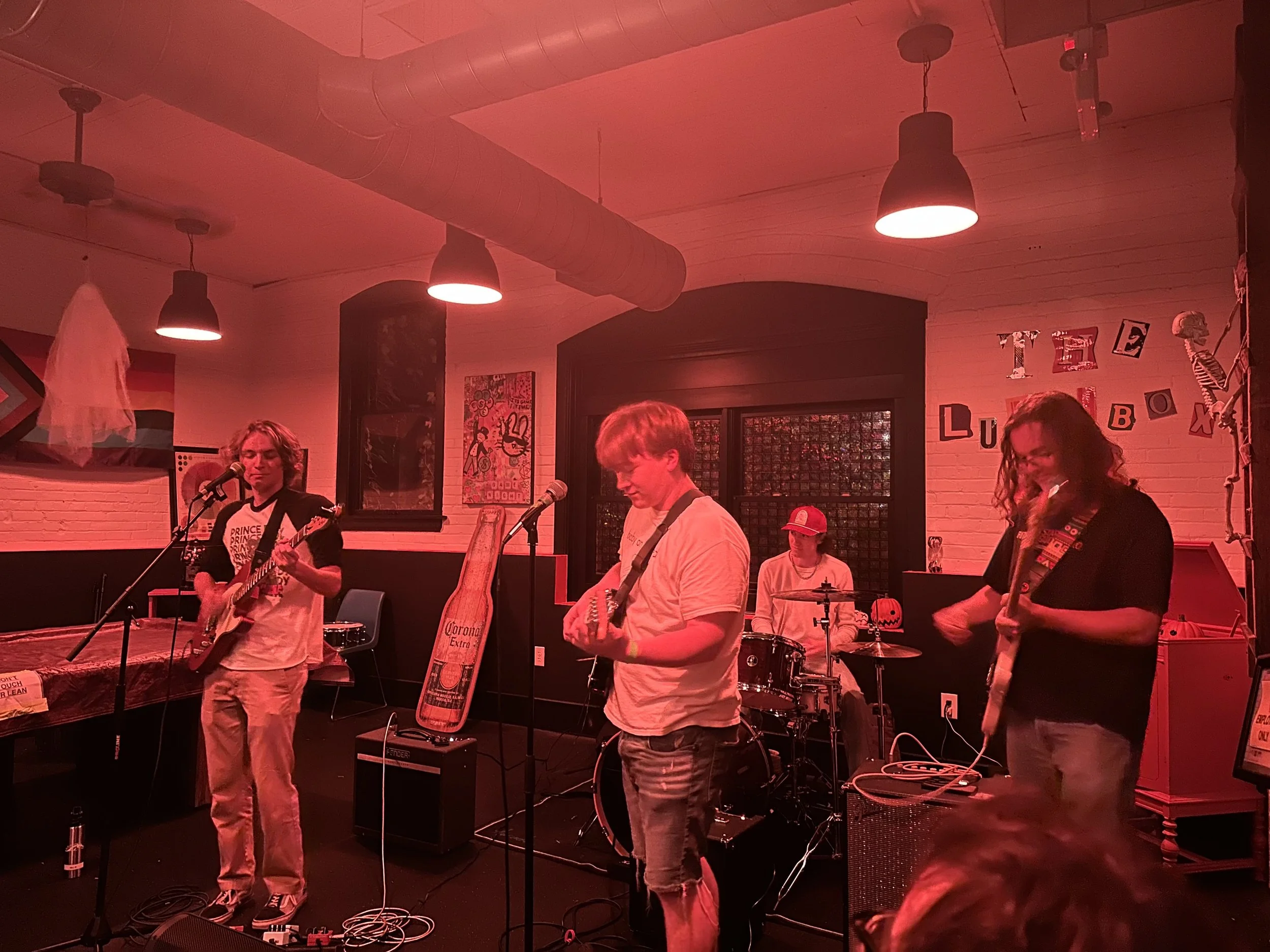 Imposter Syndrome was originally formed from a school project at Western Michigan University in Kalamazoo, MI. Classmates Robby Hutchins (drums), Joshua Kraly (guitar/keys/vocals), and Will McManus (guitar/bass/vocals) first met in Josh’s bedroom to record the debut singles in early 2024 and hit the ground running. With the goal of creating an innovative sound coded with nostalgia, Imposter Syndrome has released tracks across genres such as punk, bedroom pop, alternative rock, folk, and indie. Over the next year, the group played many shows in Kalamazoo bars, basements, and theaters, adding Dan Hubble (bass) to the lineup.